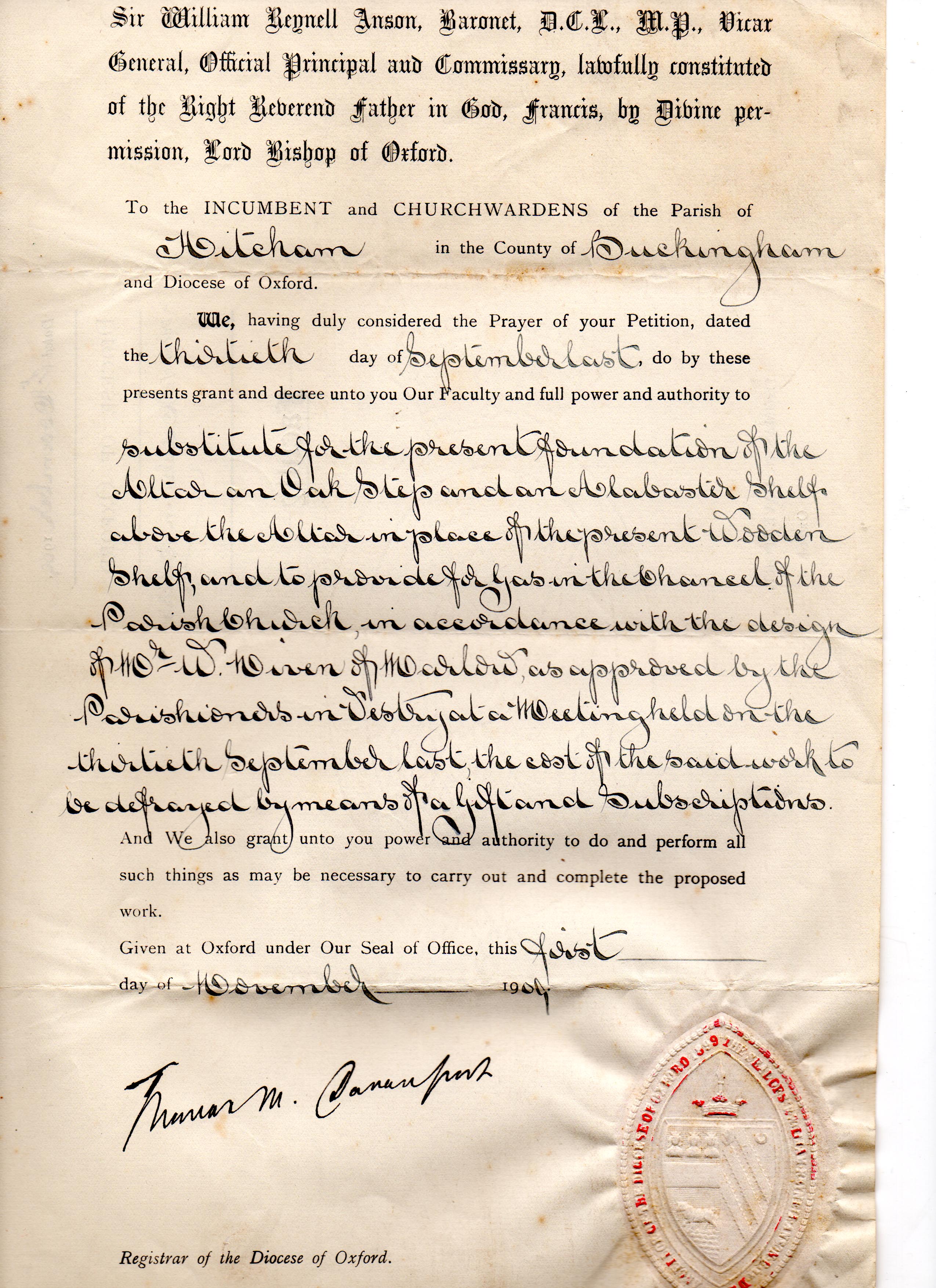 A faculty regarding the altar 1909