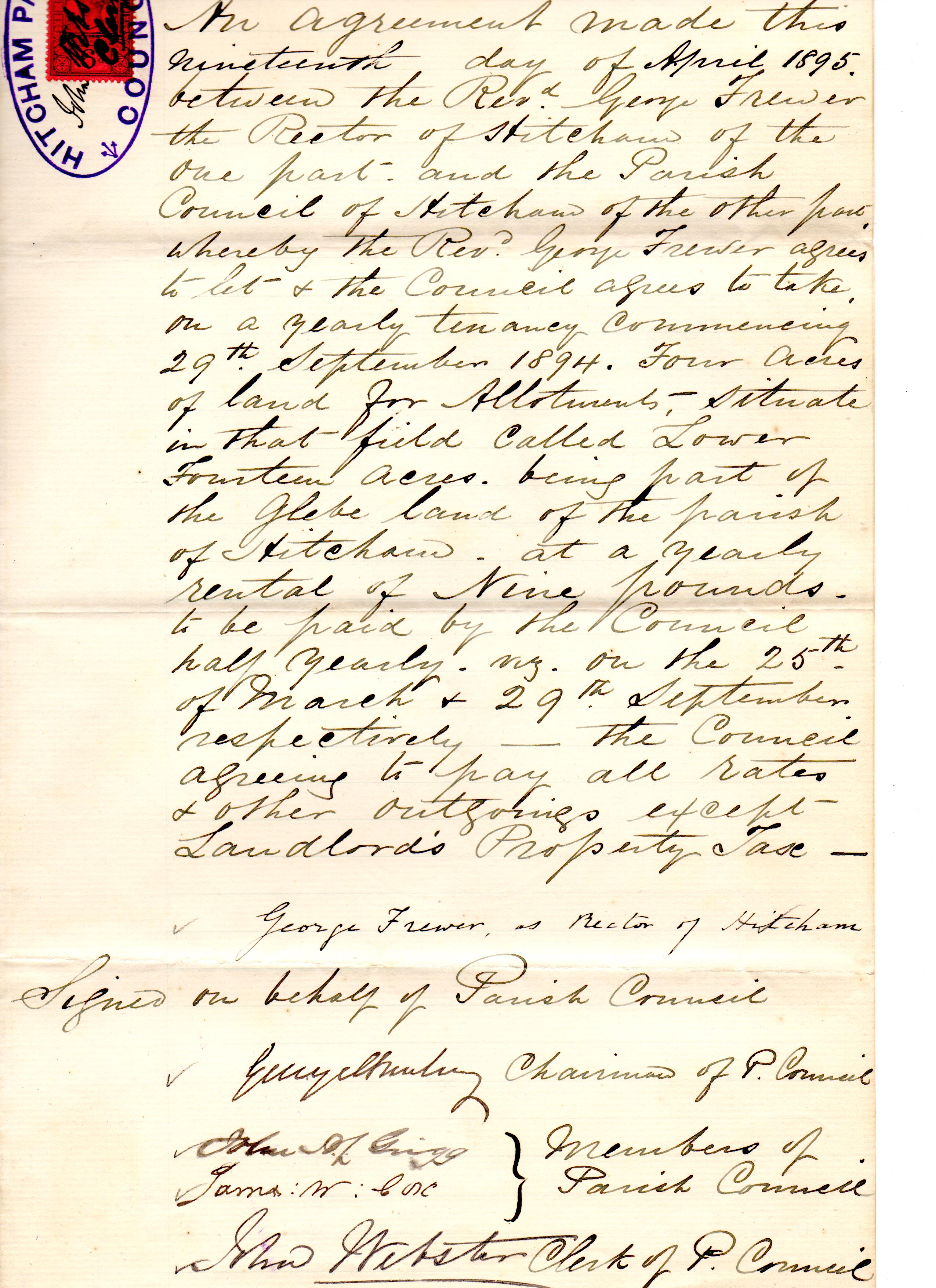 Lease of some glebe land 1895